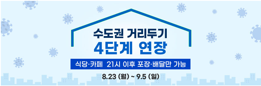 5) 08.23(월) ~09.05(일) 기간 동안 거리두기 4단계 연장